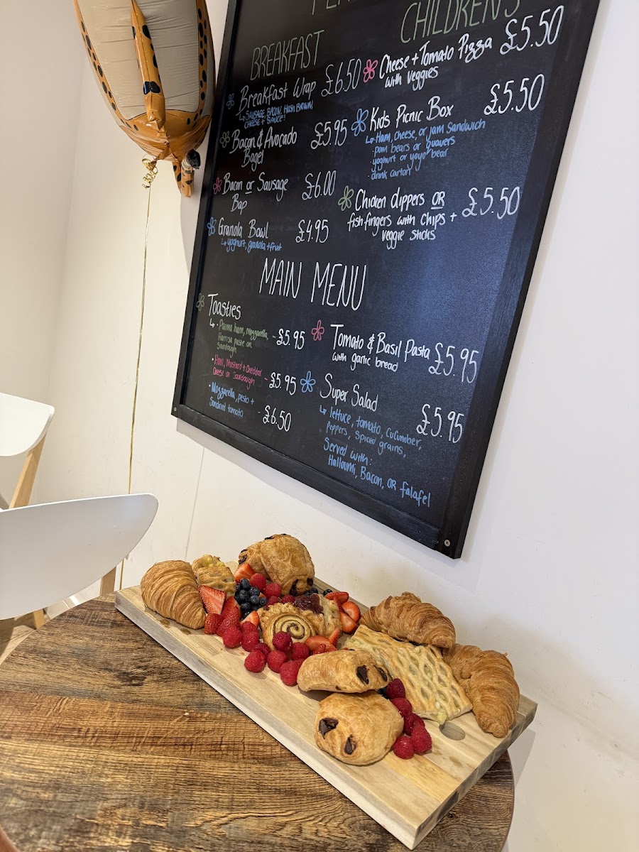 - Drinks: A selection of hot and cold beverages is available, featuring espresso-based coffees like espresso, flat white, and iced latte, as well as teas including green tea, English breakfast, chai latte, and decaffeinated tea.